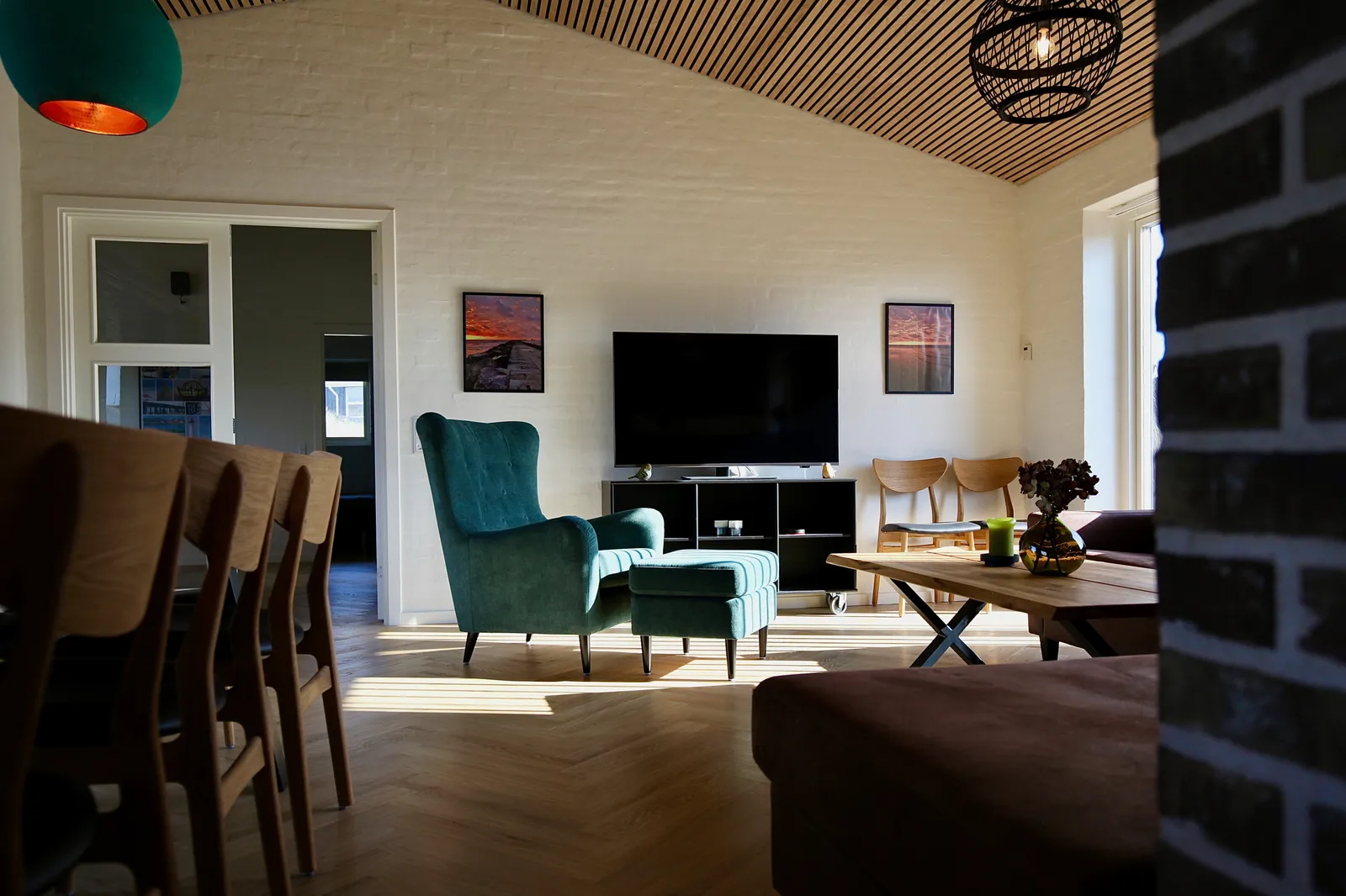 Feriebolig Gulv Gulvbelægning Møbler Senge Sofa Spisestue Stole Stue Stilfuldt møbleret feriehus på Holmsland Updated on jan 8, 2024