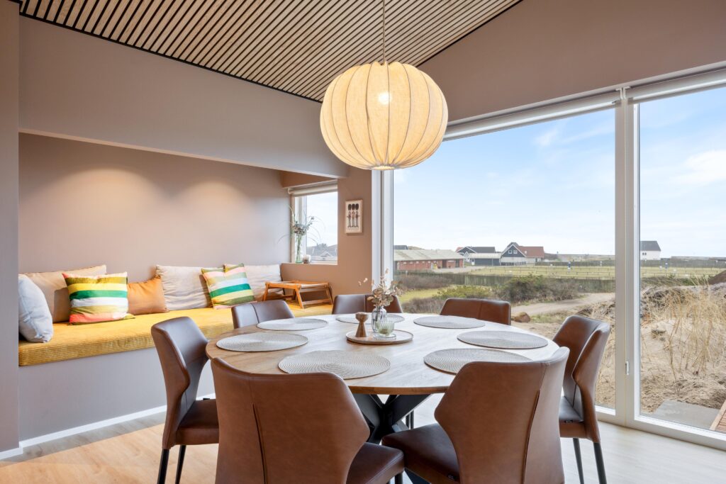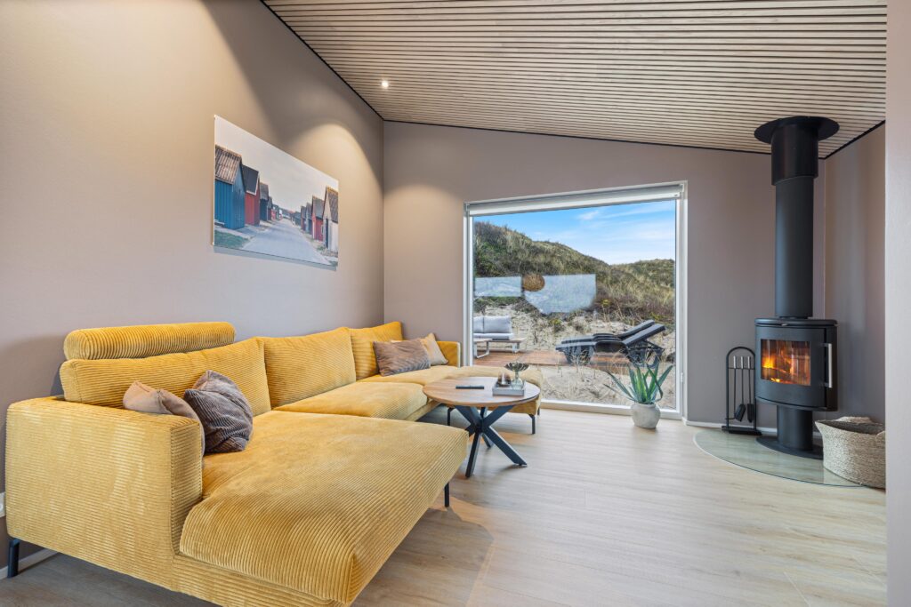 Til dette flotte, nyopførte sommerhus i Årgab har vi leveret en komplet møblering af hele huset, samt specialsyet hynde til den hyggelige alkove. Indretningen er sammensat med fokus på komfort, funktion og en varm, indbydende helhed.