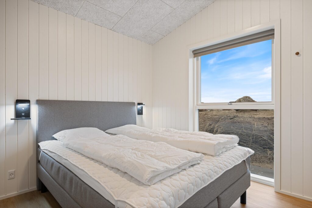 Soveværelserne er indrettet med gode senge og en rolig, enkel stil, der understøtter følelsen af ferie og afslapning. God sovekomfort er afgørende for den samlede oplevelse af et ophold i sommerhuset.